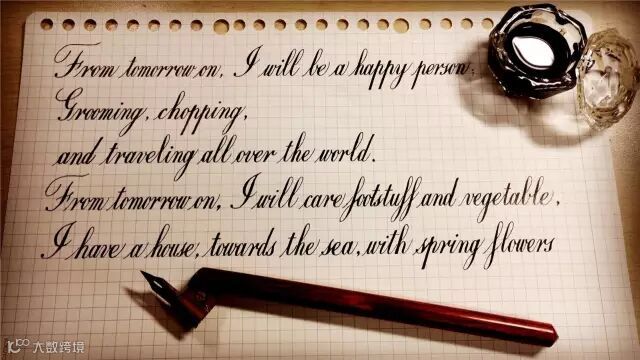 你所看到的美得像画一样的英文书写,好多都是用蘸水笔写的。