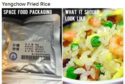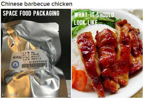 此图上的食物照片非太空餐实物,实物小编也没有见到过……