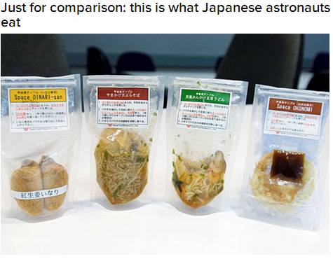 然后还很“贴心”的和其它国家的航天食物做了个对比。