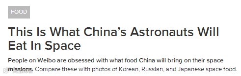 中国的“航天食谱”一直是外媒关注的热点。来看看此前BuzzFeed的报道。字里行间散发着“看看人家的菜谱”的气息。