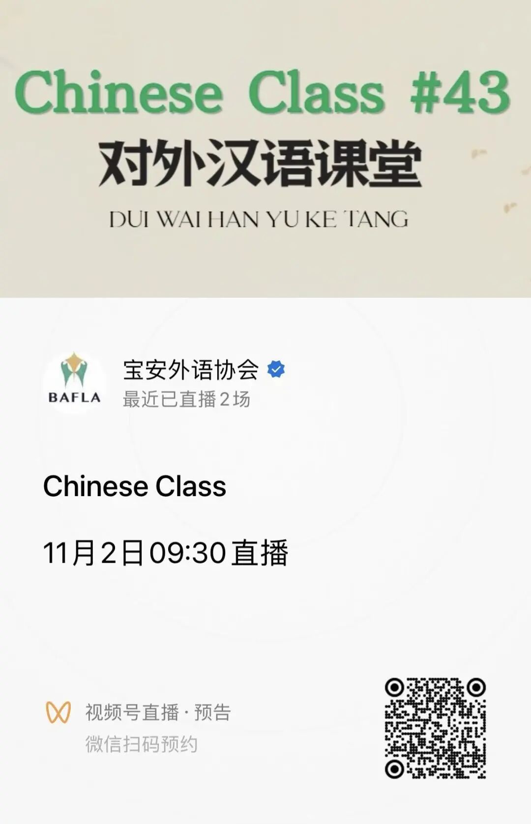 Hi, friends. Here is the Chinese class for this week, November 2 Sunday.