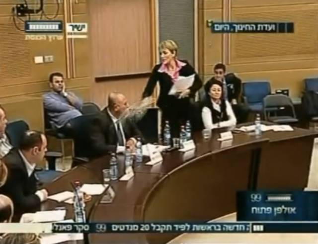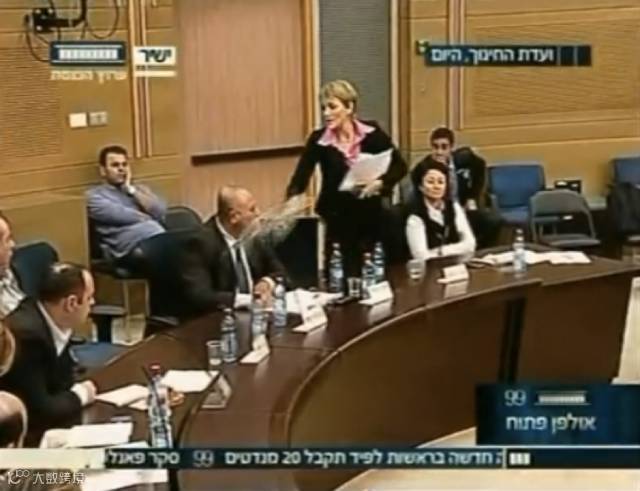2010年1月9日以色列议会例行辩论中,女议员米夏埃利与工党议员马贾德莱发生冲突,怒火中烧的米夏埃利起身倒了一杯水泼向马贾德莱,破口大骂对方“无耻”后愤然离场。