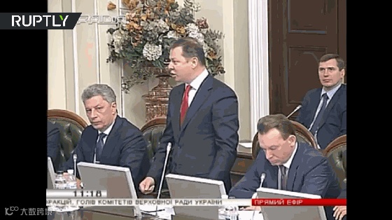 激进党领袖Oleh Lyashko在基辅的一次议会党派领袖会谈中,指责反对阵营领袖Yuriy Boyko,称其到莫斯科接领了克里姆林宫下达的命令。他话音刚落,Boyko就跳起来,摁住他的脑袋,一顿胖揍。