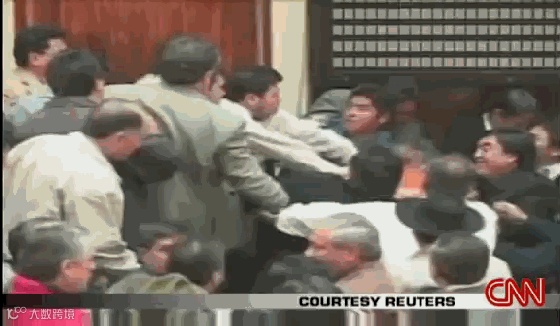 2007年8月,在不同党派争夺法官席位的大背景下,玻利维亚议员们就关于是否延长四名法官的任职期限这一问题产生分歧,并大打出手,都是暴脾气,根本拉不住。