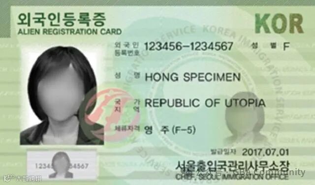 ▲Sample ID card for foreign residents in South Korea (Ministry of Justice)