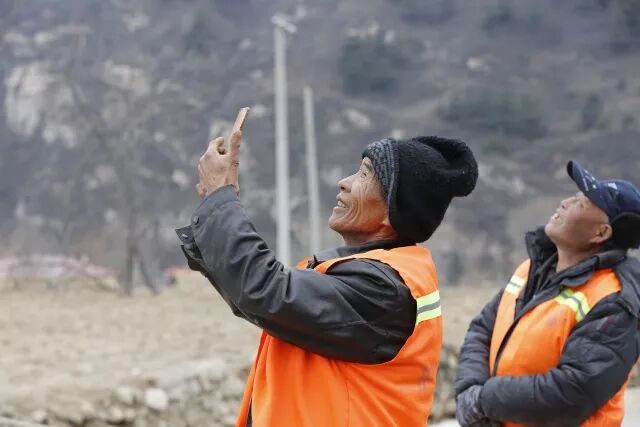 ▲ 平石头村的村民拍摄京东无人机试飞场景