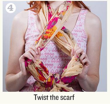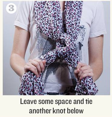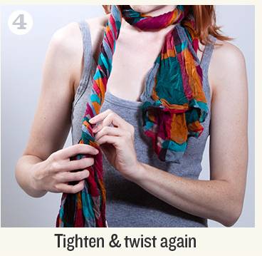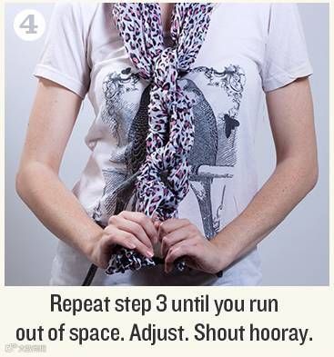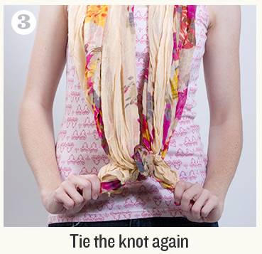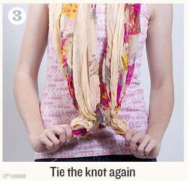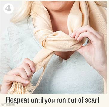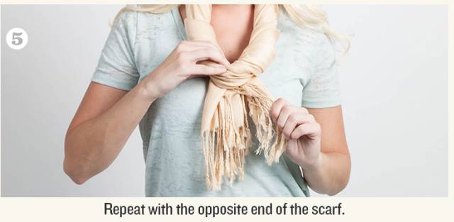 重复步骤3再打一个结,直到围巾底部。搞定!