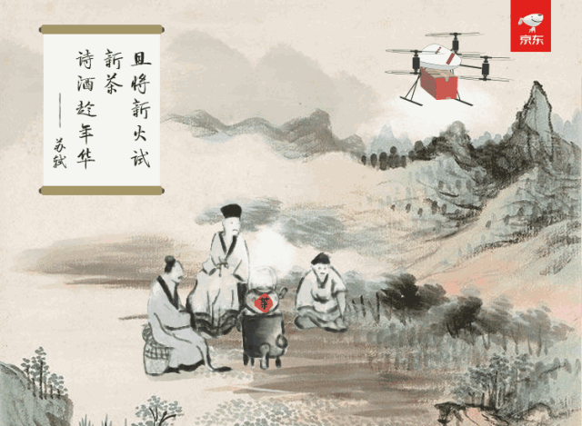 你可能不知道,东坡先生除了爱吃肉,还是个茶痴,他会自己种茶、煎茶,对火候、水温、茶叶都极为讲究。同为吃货,现代人就比他幸运多了。目前,京东无人机已实现将茶叶等新鲜程度要求高的农产品直接从产地运出来,妥妥地趁着年华来吃茶。