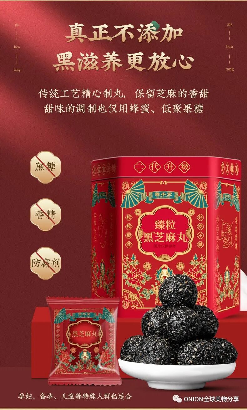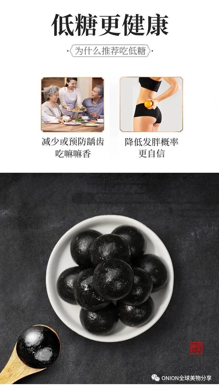 低糖黑芝麻丸,怕糖、忌糖者皆可放心食用。传统古法九晒九蒸,好吃不发胖!匠心品质,以黑养黑超给“粒”,多种食材营养搭配,给头发更多营养,让秀发乌黑莹亮