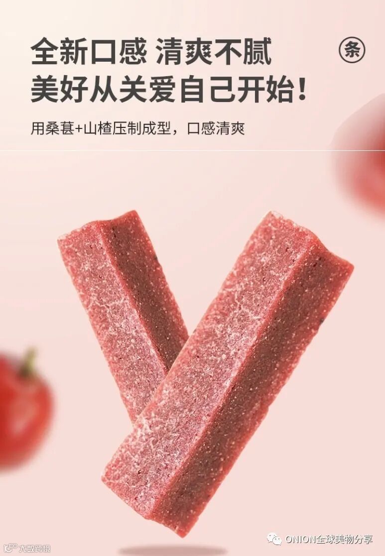 桑葚山楂条,胃爱而生~鲜果打浆,味道够纯,够正,保持初心,健康自然。酸甜软糯,口感鲜美,挑战你不一样的味蕾,每一口都是好滋味