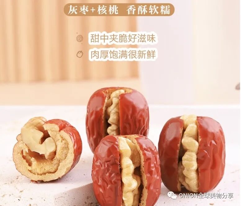 相信每个女生对红枣夹核桃都不陌生。颗颗饱满的核桃被一整颗红枣包裹,个大圆润,一口下去直接品尝到两种美味,营养加倍,口感也更丰富