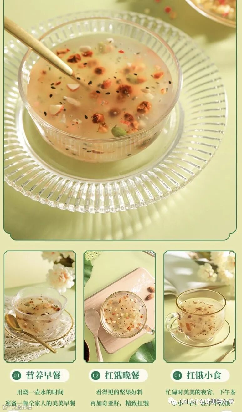 而藕粉羹的出现正好解决了我们的顾虑,沸水一冲即可食用,三分钟不到就能吃上一顿热乎饭,不管是作为早餐、加班餐、夜宵都非常合适