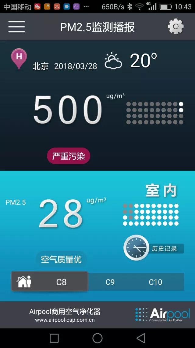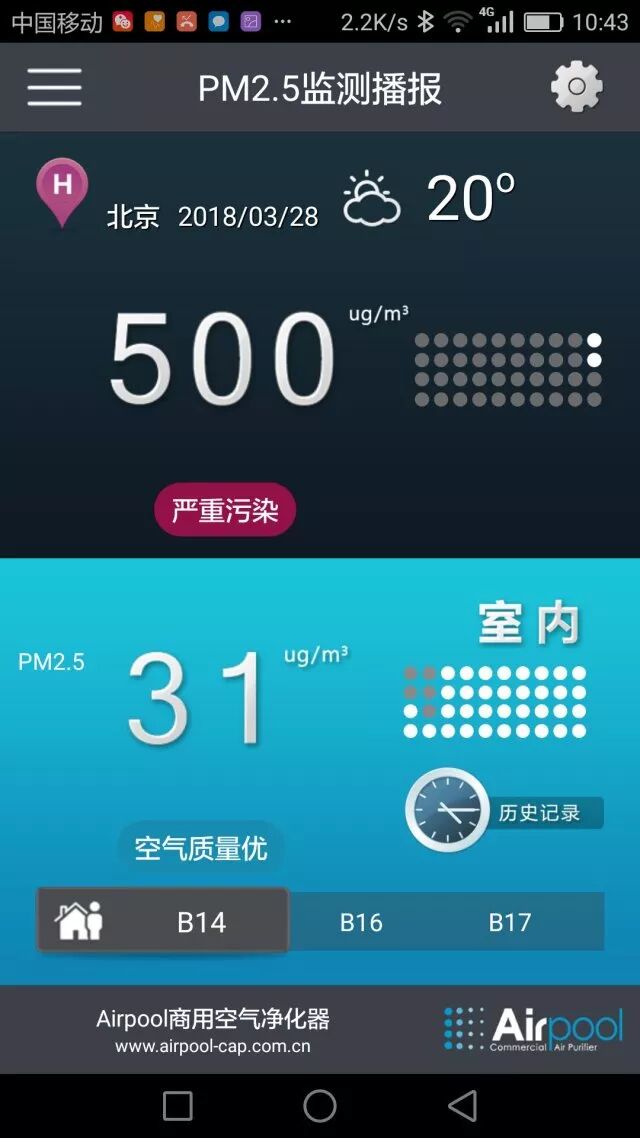 室外PM2.5浓度值500的情况下,室内只有30左右哦~