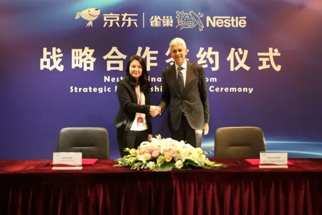 ▲ 京东集团与雀巢集团签署2018年度战略合作协议现场