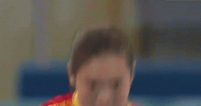 在空中她的身体尽量不变形,争取拿到全部分数。