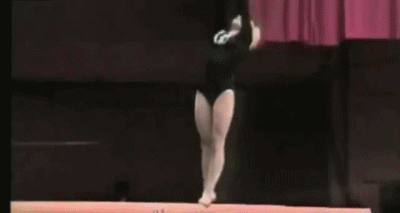 3: Using her incredible calf strength, the gymnast lands on her toes.