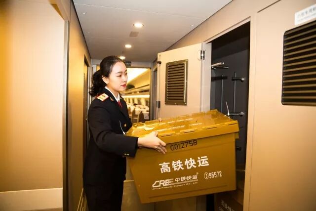 2月8日中午,正值2018年春运期间,从上海发往北京的“复兴号”G4高铁迎来新的“客人”。一件BV女士手提包,从京东物流上海亚一的奢侈品仓包装好出库,乘上高铁,被放置在车厢内封闭的高铁快运专用柜中。列车到达北京南站完成交接后,包裹使用专用包装箱,由西装革履的配送小哥,驾驶新能源汽车,当天就送达用户手中。这一快速、安全、尊享的配送,正是京东物流携手中铁快运联合推出的新产品“高铁京尊达”。
