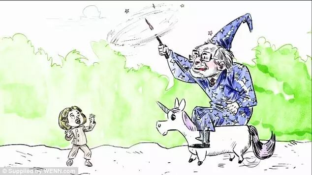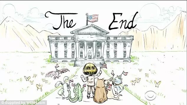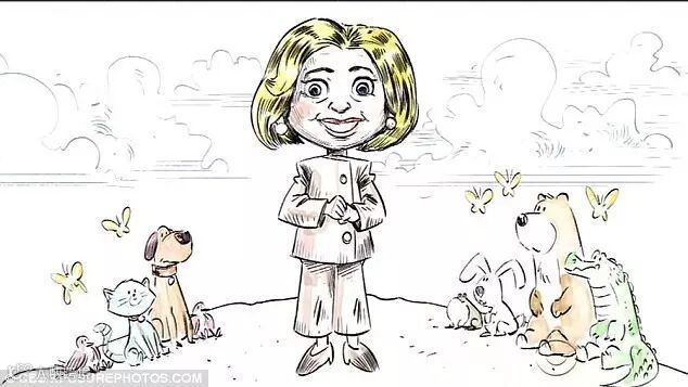 柯登不要听《彼得兔》《金凤花姑娘和三只熊》这类经典故事,非要听《2016美国总统大选》,这个故事的主角呢,就是民主党候选人希拉里,一身米黄色的她梦想统治国家。