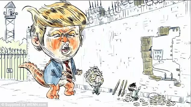 He goes on to say that the monster wants to 'build a giant wall to keep out boys and girls from faraway lands like Mexico'.