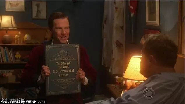 40岁的卷福似乎当爹的技术越来越棒。最近,他参加《深夜秀》(The Late Late Show)演了一个小品剧,剧中他用磁性的嗓音给儿子讲了一个《2016美国总统大选》(The Story of the 2016 US Presidential Election)的睡前小故事(bedtime story)。