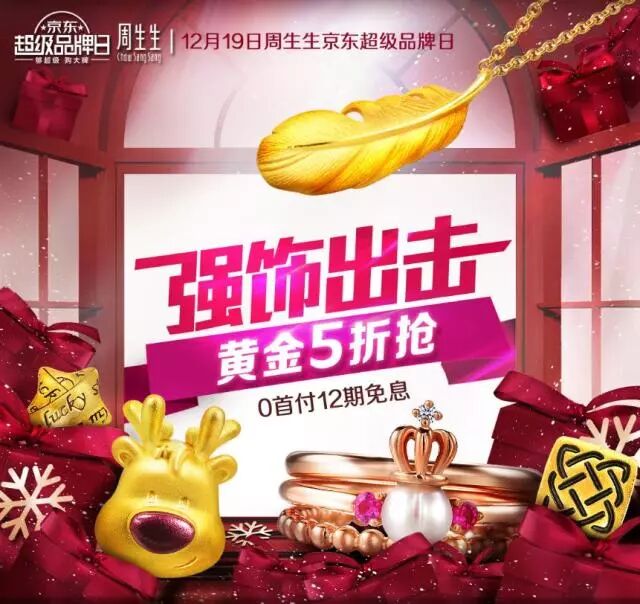 在营销方面,周生生Joy黄金新品亮相当天,京东与周生生还联合启动了超级品牌日,推出多种优惠活动。京东超级品牌日是京东高品质、强大电商能力的集中呈现,结合京东营销能力、大数据能力、运营能力、金融能力以及品牌自身的核心竞争力,联动广告、公关、网络投放、social传播等,为品牌提供24小时的全平台战略资源投入,全方面触达消费者,拉动品牌商在京东销售达到高峰。2016年5月的周生生·京东超级品牌日当天曾取得不俗战绩,手机京东全天销售额是2015年双十一的7.5倍。