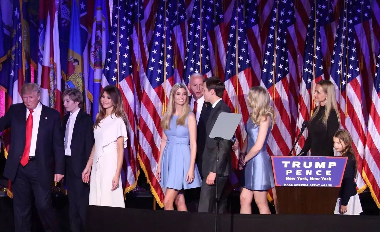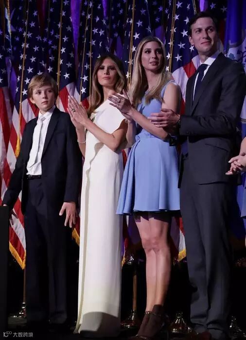 一家子站在台上,颜值都很高,除了特朗普。