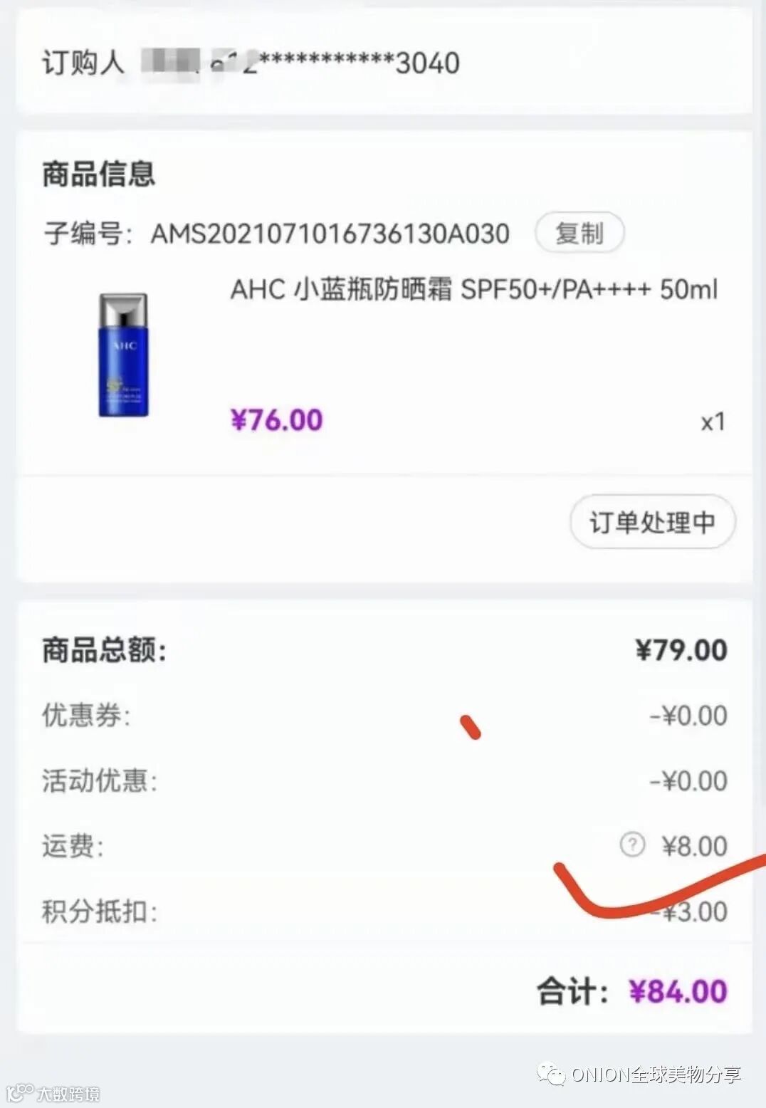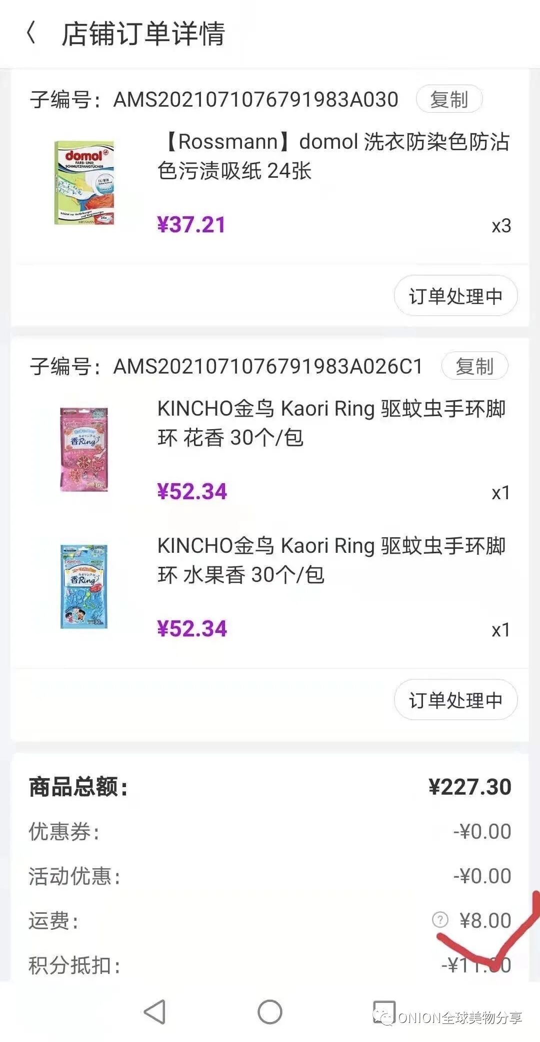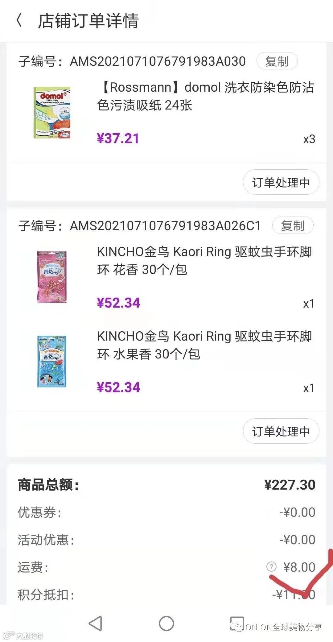 再后来,满299包邮,不满的是25元运费;再到今天非偏远地区不满¥299只收8元运费!通关关税等都由洋葱承担!(跟个国内快递无异)