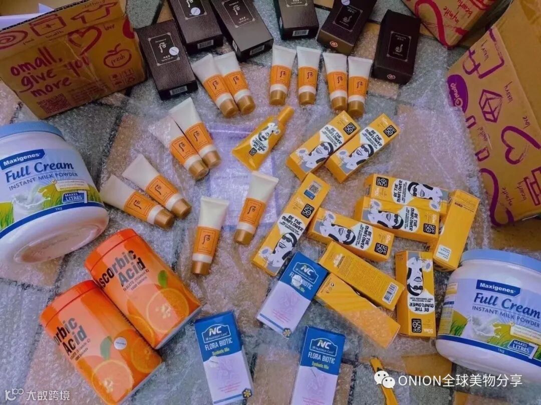 防晒霜、洗面奶、女性益生菌、蓝胖子奶粉、维生素C……