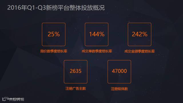 这是前三季度在新榜平台上我们观测和记录下来的一些交易数据。从整体来看,不管是广告主询购还是成交的金额都呈现出非常快速的增长。