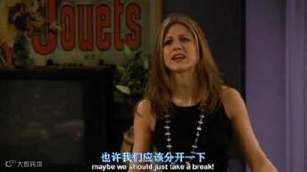 Rachel的新工作和Mark的出现让Ross感到危机重重,为了守住自己的男友地位,他变得很黏人,屡次跟Rachel争吵,Rachel终于受不了了,提出要冷静一下(take a break)。