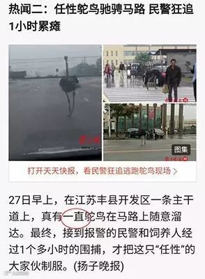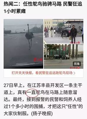 ▲2016年9月28日,腾讯新闻,“一只鸵鸟”错写成“一直鸵鸟”。来源于热心读者@寻找未来