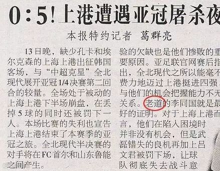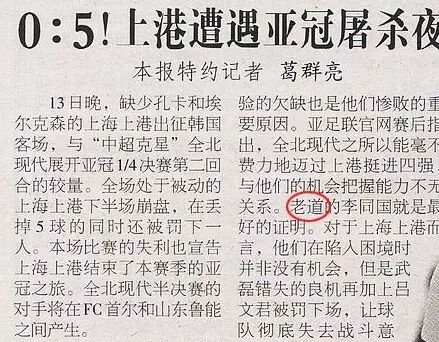 ▲ 《环球时报》2016年9月14日《0∶5!上港遭遇亚冠屠杀夜》文中:“老道的李同国就是最好的证明。”“老道”应为“老到”。“老道”是名词,“老到”是形容词,两词相差甚远。