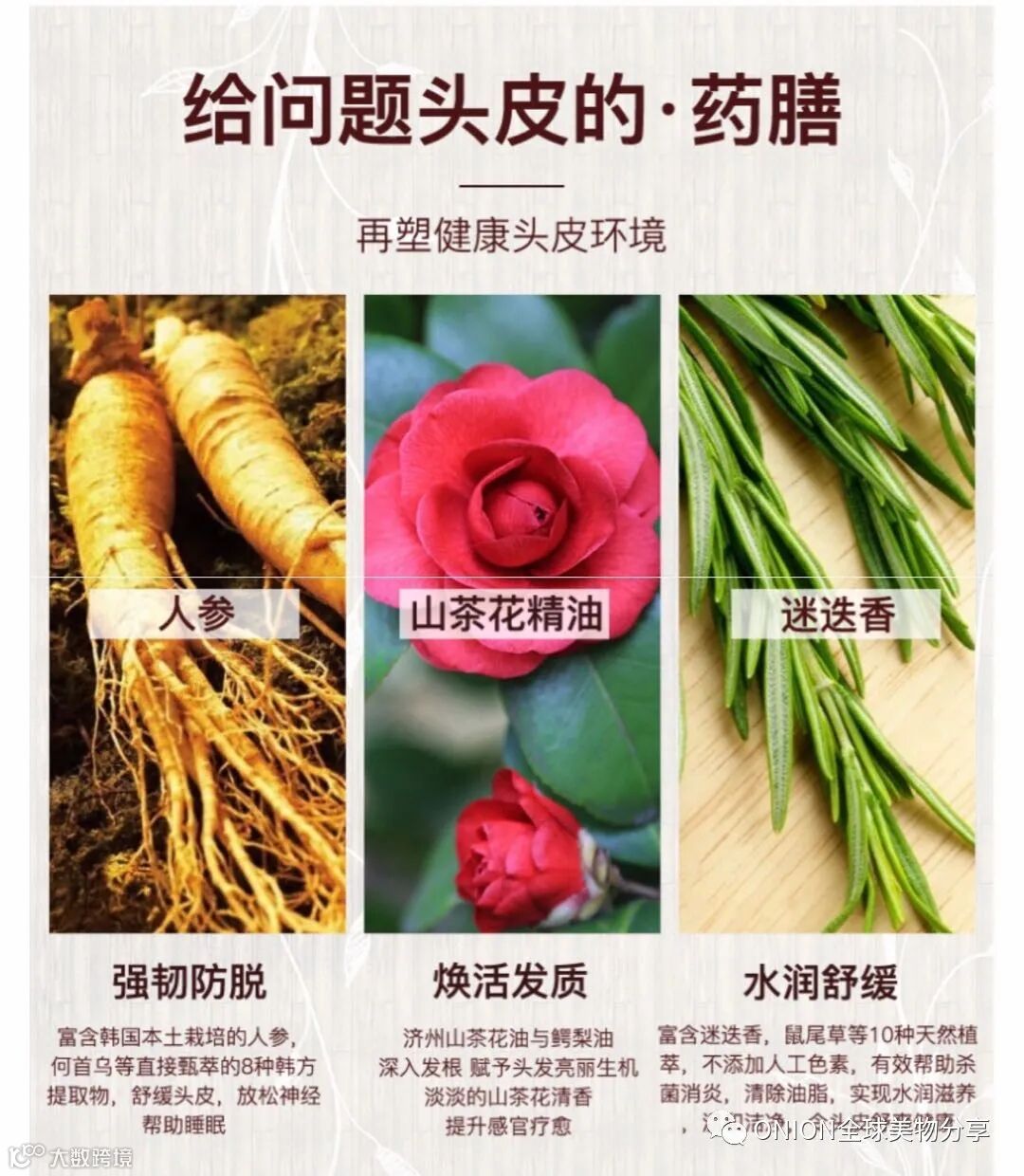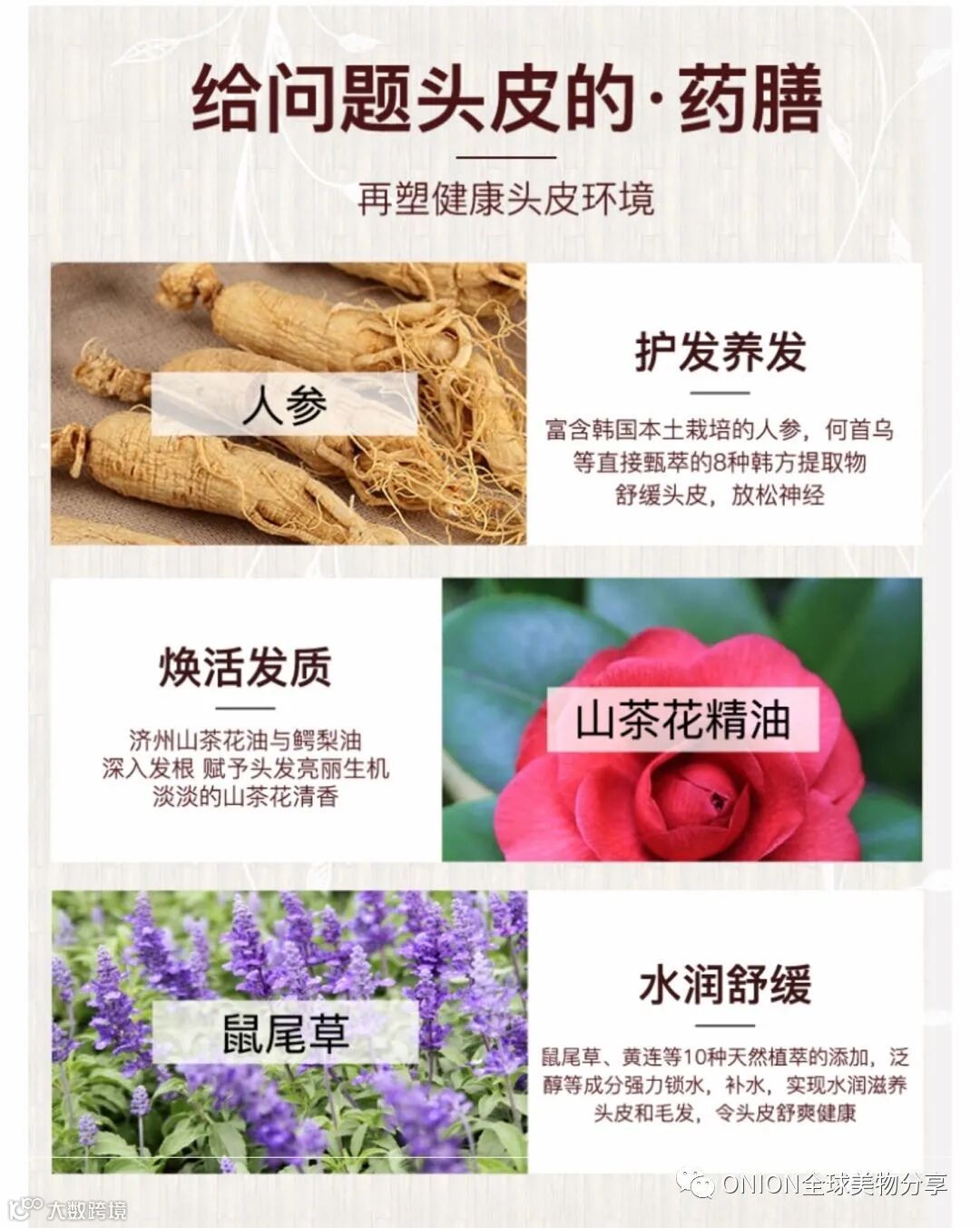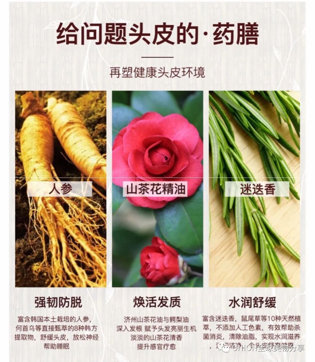 它的产品理念为以自然之力滋养头皮生命力,遵从古方传承东方医学百年韩方。通过多年研究发现百年医书《东医宝鉴》中记载的菊花散处方,可以采用涂抹而非内服的方式护理秀发。产品主打的就是防脱功效。