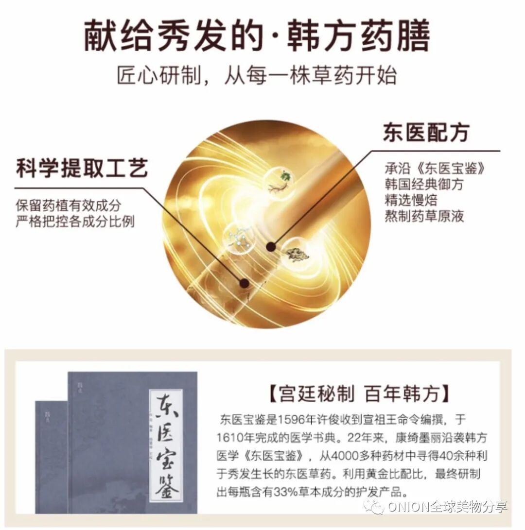 康绮墨丽创立于1998年,专注草本熬制养发22年,韩国顶级洗发护发品牌。专注于韩方传承的功效型养发品牌,它的产品以韩国古代医书《东医宝鉴》为基础,精选40余种韩方草药来科学搭配。通过利用传统秘法,长时间熬煮浓缩提取出草本精华,从而制成天然温和的韩方洗护产品。