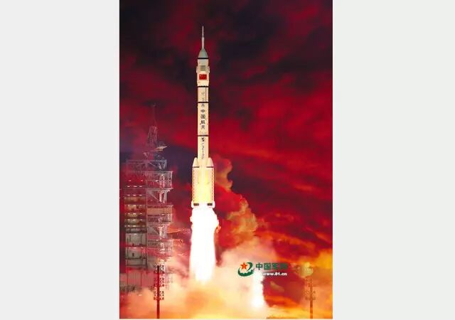 2016年10月17日7时30分,搭载着神舟十一号载人飞船的长征二号F遥十一运载火箭在酒泉卫星发射中心(Jiuquan Satellite Launch Center)点火升空,两名航天员将被送入空间实验室。