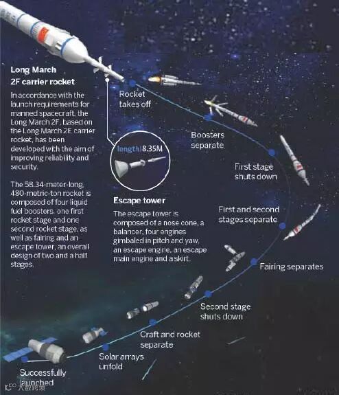 这次的长征2F运载火箭具体是什么样的呢,我们来看看: