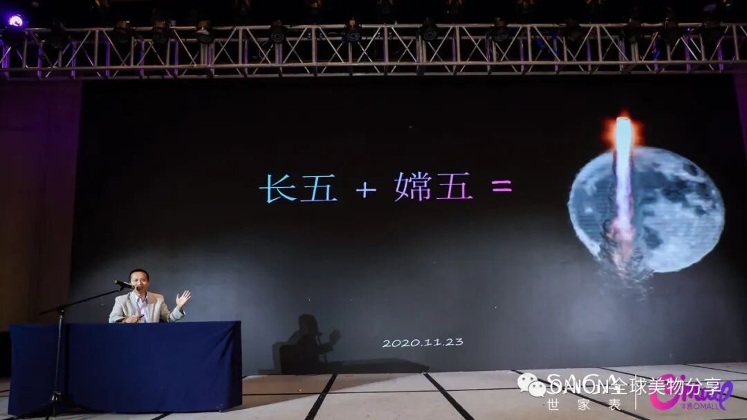 得利钟表集团SAGA世家表总经理刘仁先生致词:一起见证嫦娥五号成功奔月,SAGA和洋葱的合作踏入新征程!并为我们讲述了SAGA和航天的结缘。SAGA品牌设计总监,也为我们介绍了月兔等系列的设计理念。