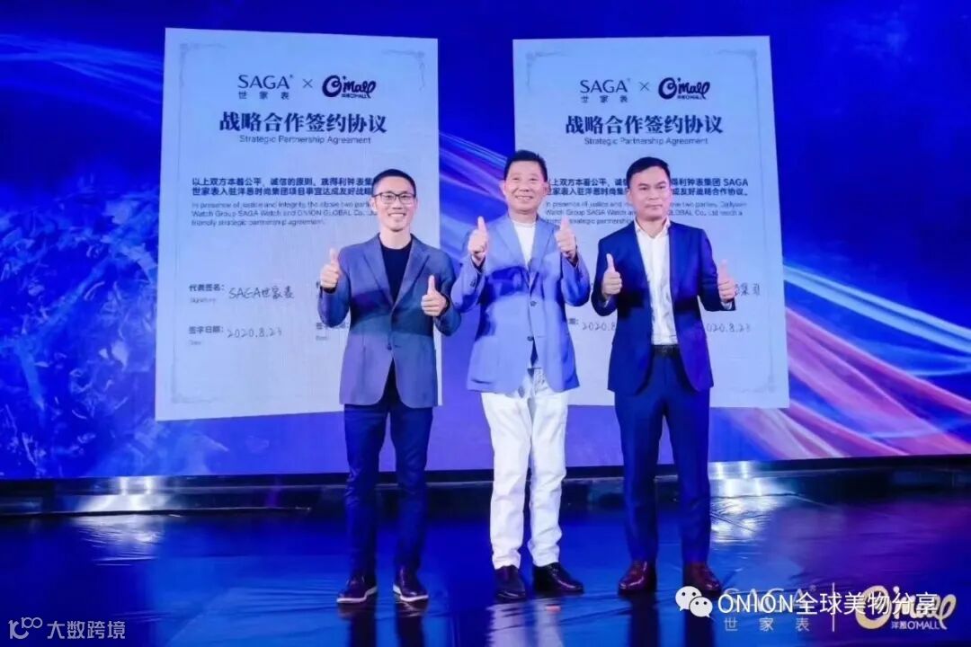 SAGA世家表CEO刘仁(左)、得利钟表集团董事长梁伟浩(中)、洋葱集团CMO潘建岳(右)