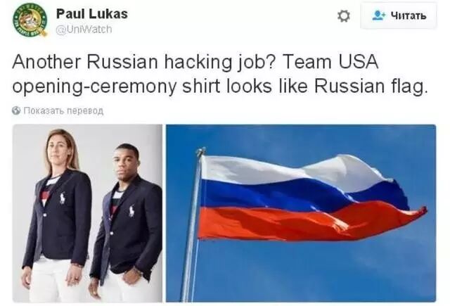 不过,也有眼尖的网民发现其中暗藏的Bug,贴身穿着的圆领衫图案竟然与俄罗斯的白蓝红三色国旗“不谋而合”。有网民打趣说,看样子这又是俄罗斯黑客的杰作。。。