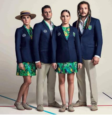 东道主巴西奥运队的制服由本土泳装设计师品牌 Lenny Niemeyer 特供。设计受到巴西多样性和丰富自然景观的启发,将代表巴西国旗的绿色、蓝色和黄色运用到了鸟类与热带花卉的印花图案中。