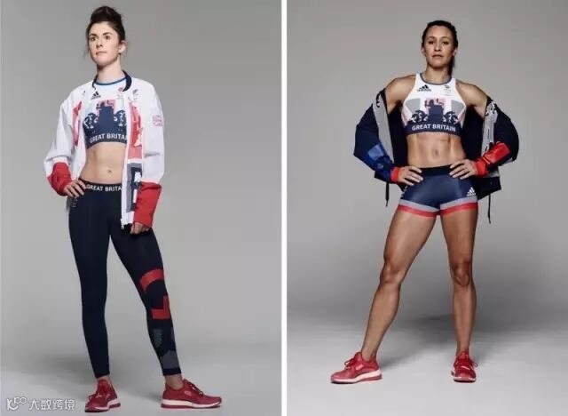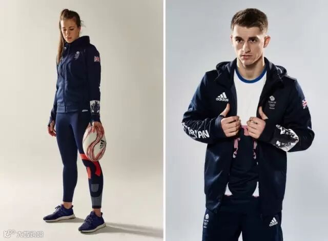 设计师还将Great Britain(大不列颠)的全拼或者缩写GB巧妙地在服装上展示出来,既没有影响整体的美感,又很好地展示了国家的标志。