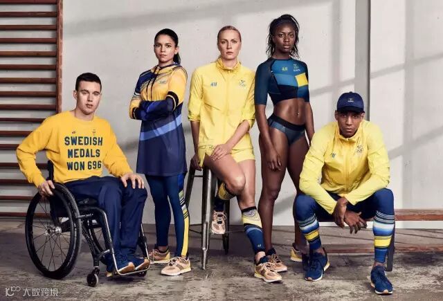 瑞典的奥运队服,由瑞典快时尚品牌 H&M 操刀设计。选用了瑞典国旗蓝、黄为主色调,制作了一系列名为“For Every Victory” (为了每一次胜利)的制服。