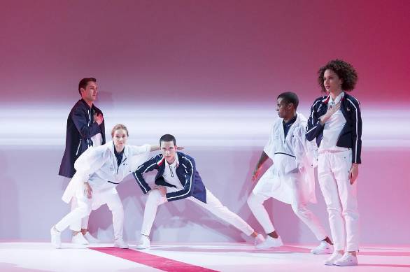 制服以法国国旗的红、白、蓝为基调,大面积运用纯白与海军蓝,点缀以红色,就连品牌logo——那只鳄鱼也变成了蓝白红三色。