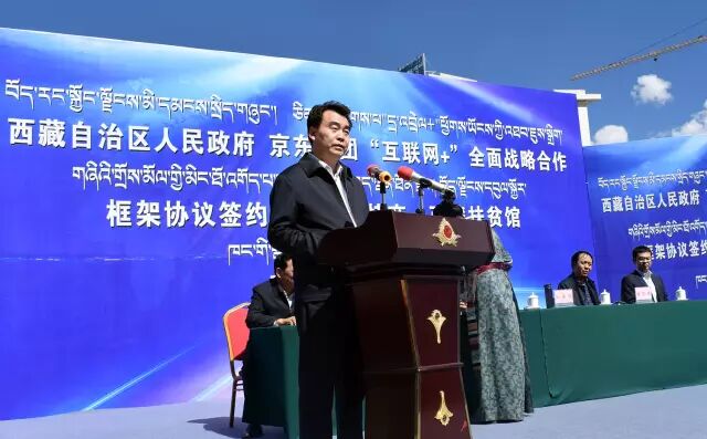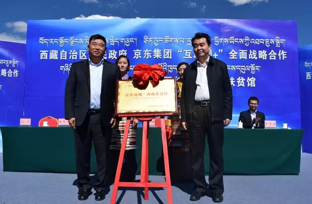 9月14日,京东集团与西藏自治区人民政府在拉萨隆重签署“互联网+”全面战略合作框架协议。双方将充分发挥各自优势,在现代物流、商贸流通、数据服务、创业创新等领域加强合作,促进西藏产业结构转型升级,京东“西藏扶贫馆”也在当日正式开馆。西藏自治区人民政府副主席汪海洲,西藏自治区人民政府副秘书长潘旭春,西藏自治区商务厅党组副书记、厅长边巴,京东集团执行副总裁兼首席公共事务官蓝烨,京东集团西南区分公司副总经理杨贺欣,京东集团公共事务部高级总监李贺明等出席签约仪式。