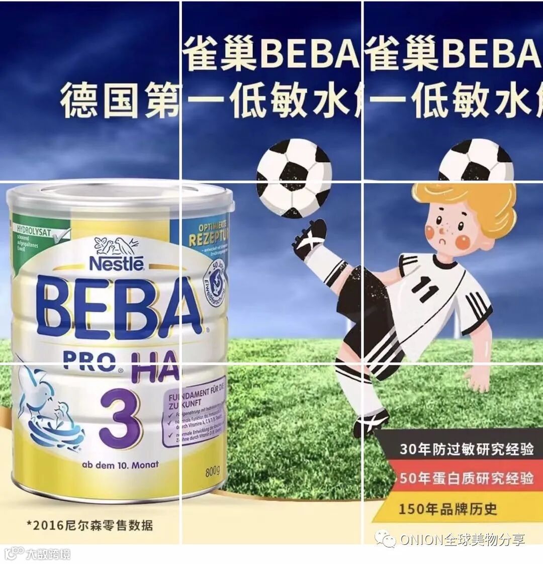 Nestlé旗下BEBA,有着逾30年的防过敏研究经验,创新研发出双重防敏专利技术,不但赢得了德国GINI研究的高度认可,还俘获大批德国宝妈信赖,稳居德国奶粉销售榜单前列。
