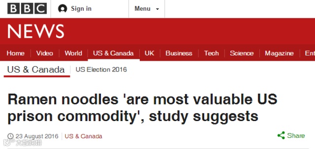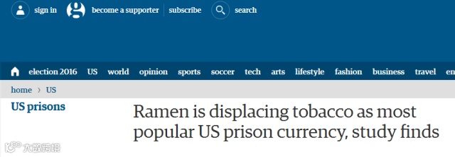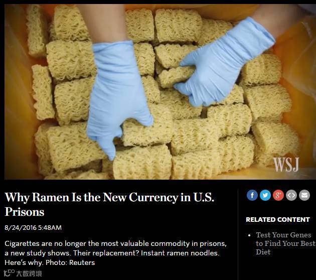 BBC、《卫报》、《华尔街日报》等多家外媒纷纷报道称,方便面取代香烟,一跃成为美国监狱系统地下黑市新的“硬通货”,堪称象牙塔中的尖货。