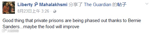 庆幸有伯尼·桑德斯,私人监狱逐渐被取消,也许伙食能得以改善。