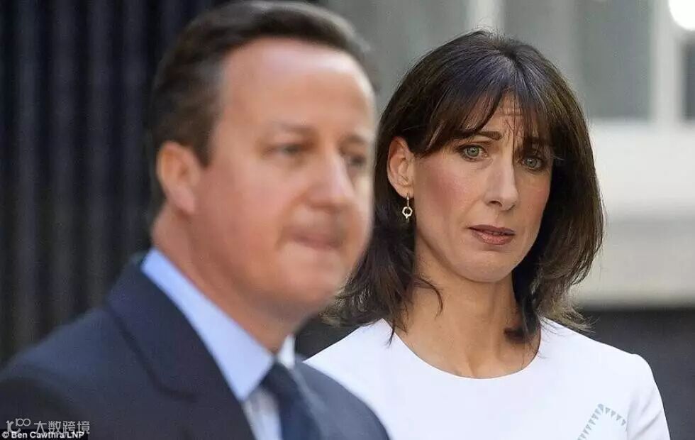 卡梅伦讲话时,他的夫人萨曼莎一度落泪。