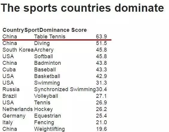 如果有人觉得前面这些战绩还不够客观全面,美国科技博客Quartz网站用数据说话,证明中国乒乓无人能及: