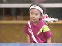 犹记当年,进击的小魔王爱酱还是一枚可爱的小白兔,却在赛场上不幸遇上了张怡宁,从此就被虐倒在大魔王的球拍之下,哭到不能自已。